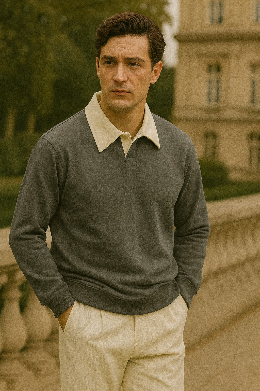 Product name:Gray Polo Sweatshirt Product Type : SweatShirt Stylish and Trendy Material: Fleece Classification of...